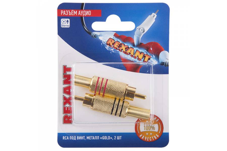 Разъем аудио RCA под винт металл "Gold" (блист.2шт) Rexant 06-0152-A2