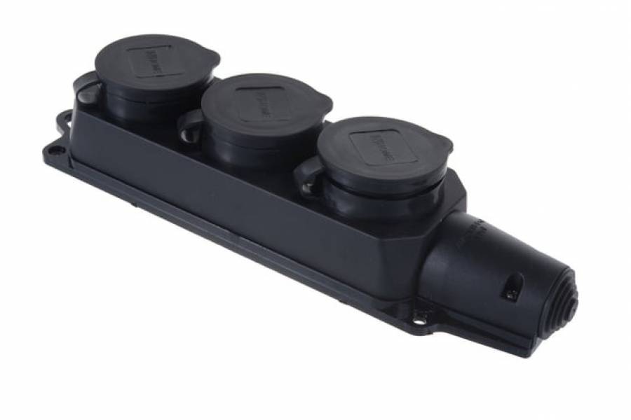 Тройная каучуковая розетка с заземлением и заглушками 9323 от ТМ INhome предназначена для подсоединения сразу трёх электрических приборов в электрическую сеть напряжением 230В, номинальным током 16А. Каучуковый корпус устойчив к износу, механическому повреждению, химическому воздействию, обладает высокой эластичностью, водонепроницаемостью и отличными электроизоляционными свойствами. Изделие отличается степенью защиты от влаги и пыли IP44, а также широким диапазоном рабочих температур. Цвет корпуса – чёрный