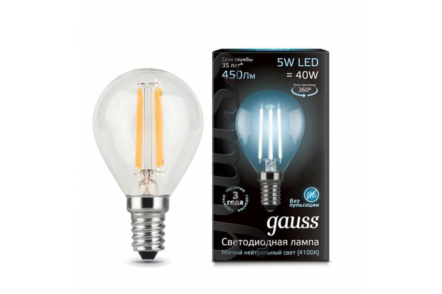 Лампа светодиодная Black Filament Шар E14 5Вт 4100К Gauss 105801205