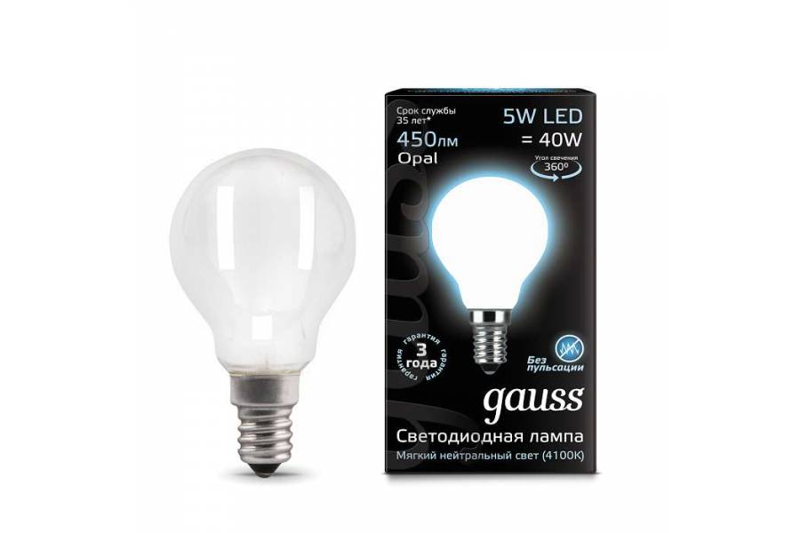 Лампа светодиодная Black Filament Шар E14 5Вт 4100К OPAL Gauss 105201205