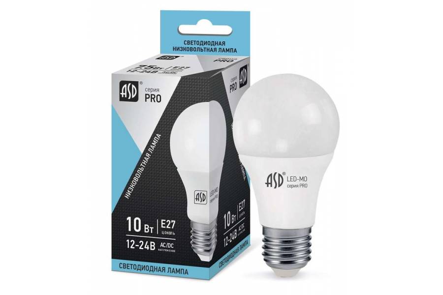 Лампа светодиодная низковольтная LED-MO-12/24В-PRO 10Вт 12-24В E27 4000К 800лм ASD 4690612006970