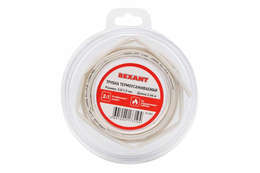 Трубка термоусаживаемая 3.0/1.5мм бел. ролик 2.44м Rexant 29-0001