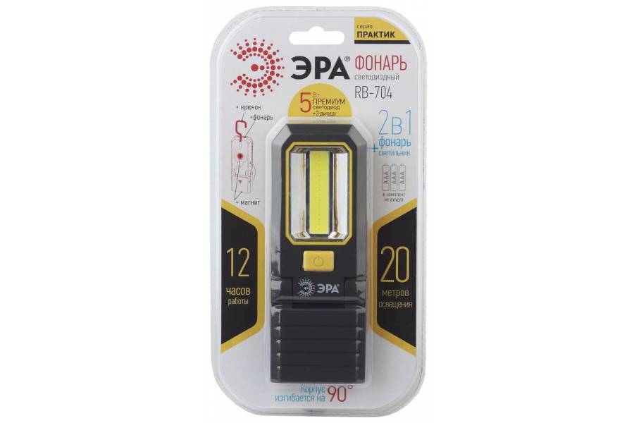 Фонарь RB-704 рабочий серия "Практик" 5Вт COB + 3хLED пласт. 3хAAA крючок; 2 магнита блист. ЭРА Б0029179