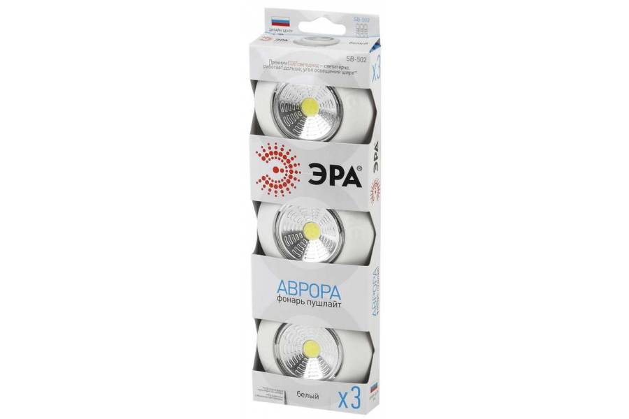 Фонарь SB-502 NEW пушлайт "Аврора" COB 3хAAA бел. (уп.3шт) ЭРА Б0031041