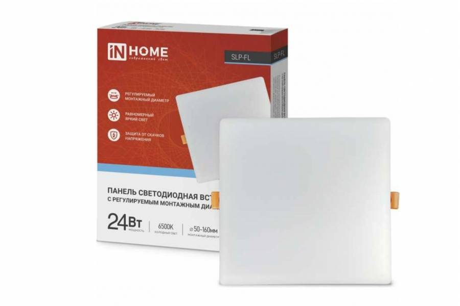 Панель светодиодная встраиваемая безрамочная SLP-FL 24Вт 230В 6500К 2160Лм 172мм с рег. монтажом 45-140мм белая IP20 IN HOME